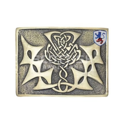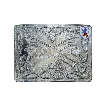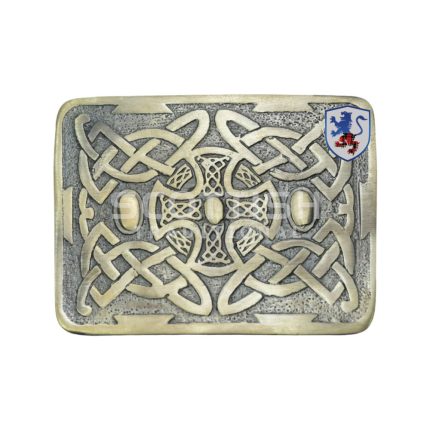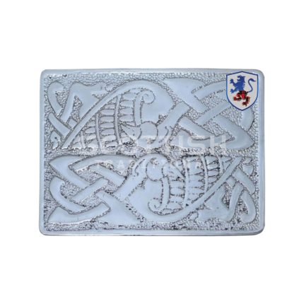 Scottish Celtic Design Chrome Buckle With Brass Rampart lion Badge