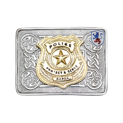 Scottish Celtic Design Chrome Buckle With Brass Police Protect & Serve Garda Badge