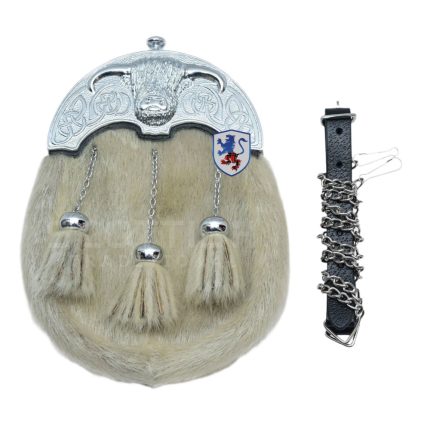 Antique Scottish Flower Cantle With White Fur Sporran three Tassels
