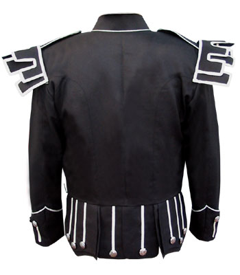 Home Highland Jackets Pipe Band Doublets Black Traditional Scots Guards Style Doublet with Castellated Shoulder Shells