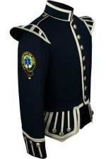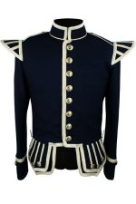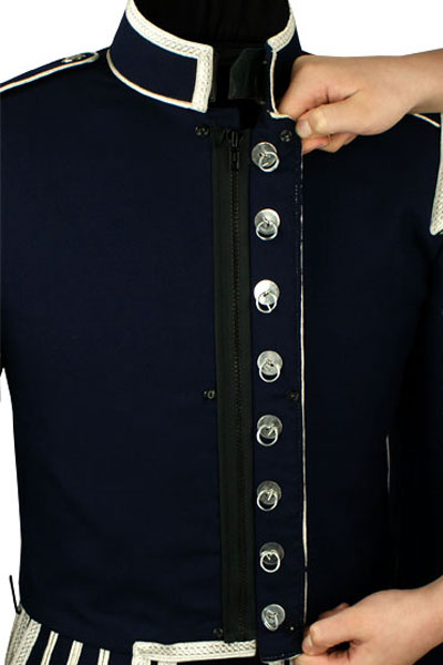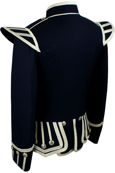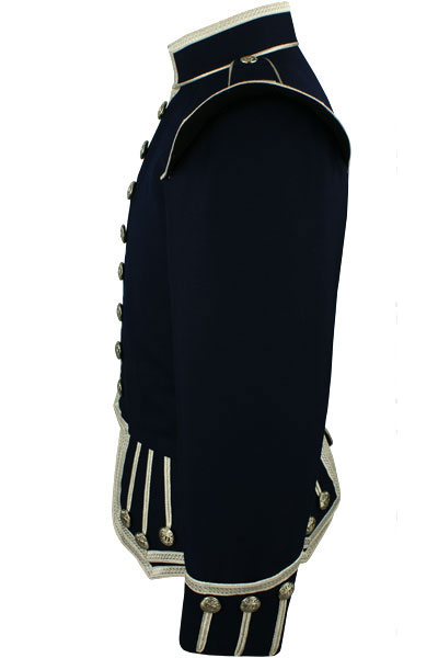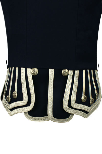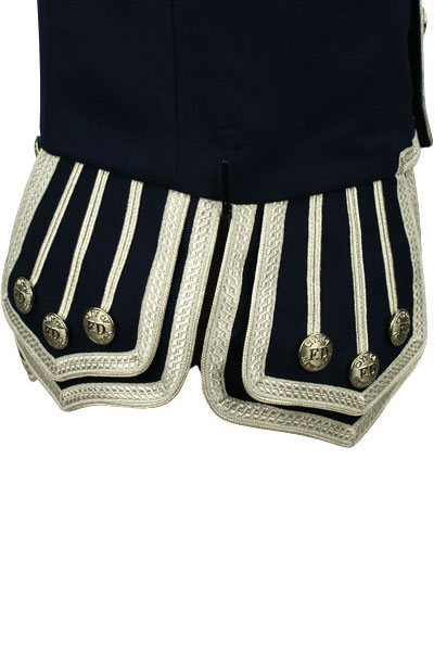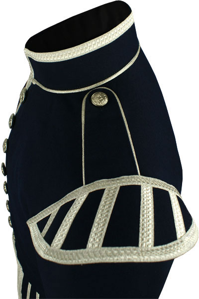 - Silver piping trim on collar base, front, skirts, cuffs and epaulettes
