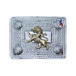 Scottish Celtic Design Chrome Buckle With Brass Rampart lion Badge