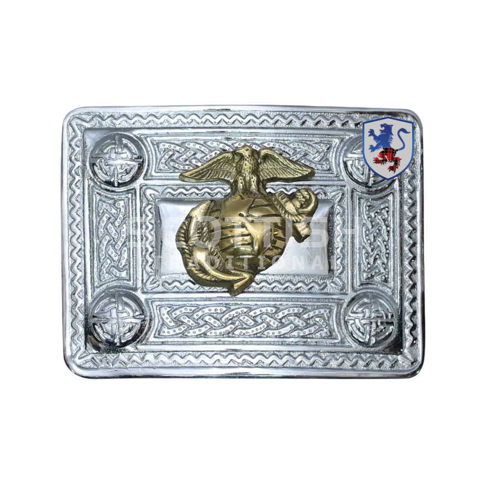 Scottish Celtic Design Chrome Buckle With Brass Us Marine Badge